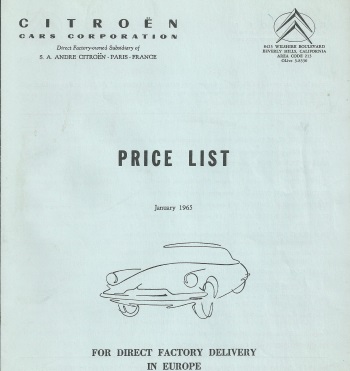 un catalogue de la DS 19 du millésime 65 pour les USA