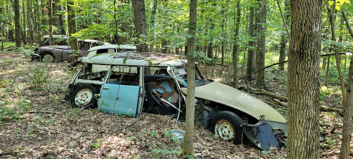 | Voici un document exceptionnel ! Ces 2 DS 21 break se sont suivies sur la chaine de montage à Javel, les n° de coque se suivent à l'unité près ! Ces 2 épaves ont été vendues neuve au Québec. Grace au n° de série, la plus récente des 2, celle de droite la 3 577 600, a été vendue avant la plus vieille, celle de gauche la 3 577 605. Ceci corrobore le fait que le n° de série n'a rien à voir avec l'ordre de construction des DS. Autre chose troublante, elles ont toutes les 2 un intérieur en jersey de velours bleu. La plus récente a été repeinte et a été "francisée", je suis quasiment sûr qu'elle était aussi bleu Camargue. Étant donné qu'il y a 4 unités entre ces 2 n° de série, il est fort probable qu'une série d'au moins 6 ID 21 FH ont été exportées à Montréal, elles ont transité sur le même bateau. | |