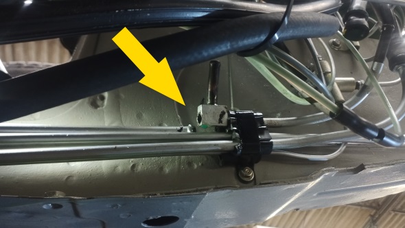 intercalé 2 cales entre la commande et le support (flèche rose). Sans
