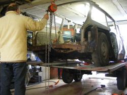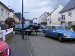 | Philippe (un autre!, la moitié de mes copains s'appelle Philippe!) est chargé de monter la DS avec le palan. |