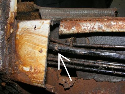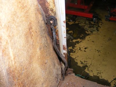 | ....La caisse est tellement pourrie que je n'ai aucun problèmes pour faire passer le faisceau par les trous "passe-fils" qui n'existent plus. Un léger coup de pied et la tôle de fond coffre tombe! | ||