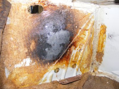 décidément! Les traces d'incendie que vous connaissez, mais ce n'est pas là le plus important. Je m'aperçois avec "horreur" que sur la photo de gauche se trouve le support gauche du bloc de ventilation du chauffage -15, or je n'ai pas le souvenir de l'avoir démonté!!!!!!!! |