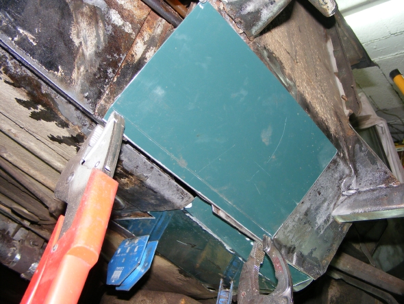 qui va jusqu'aux pieds du passager. Cette tôle, une fois soudée, sert