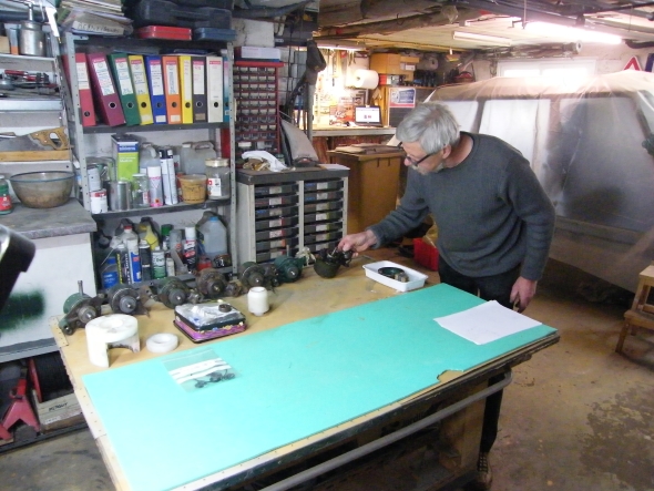 | Le soir, après le départ de Michel, j'ai nettoyé toutes les pièces de la pompe et j'ai tout rangé correctement, ça fait plus "pro"! | Toutes les pièces sont appareillées, il ne faut pas se tromper! J'ai remonté le cœur de pompe et j'ai attendu la réunion du club pour la tester. |