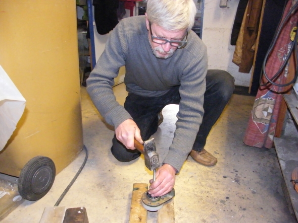 | Sans attendre que ça refroidisse, Michel donne un petit coup de marteau.... | ...et hop! La cage extérieure est sortie, étonnant non ? |