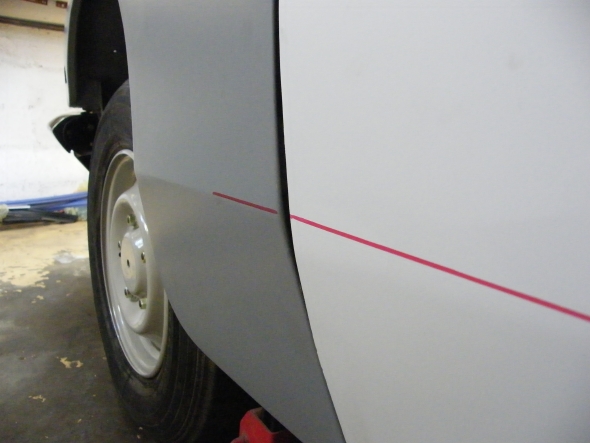 | En fait, le réglage des éléments de carrosserie d'une DS est affaire de "compromis". Il faut un juste milieu. Dans ce cas précis, l'aile avant gauche provient de ma 69 alors que la porte avant gauche provient de cette 75. Il est très difficile de régler une carrosserie avec des éléments qui proviennent de plusieurs DS, ceux-ci ont vieillis différemment. Et suivant les années de construction, les cotes changent, sans doute avec l'usure de la matrice (là je m'avance un peu car il doit y avoir des tolérances à respecter). | |