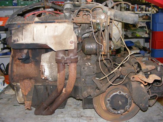 Ce n'est pas la peine de sortir le moteur à chaque fois, mais s'il faut le faire c'est le plus simple. Vu les nombreux indices que j'ai trouvé sur cette voiture concernant ce kilométrage, je peux dire maintenant de manière sûre que cette superbe épave n'a que 41451 km. Évidemment, ça me fait une belle jambe puisqu'il y a tout à refaire, mais n'empêche, je suis heureux...... |