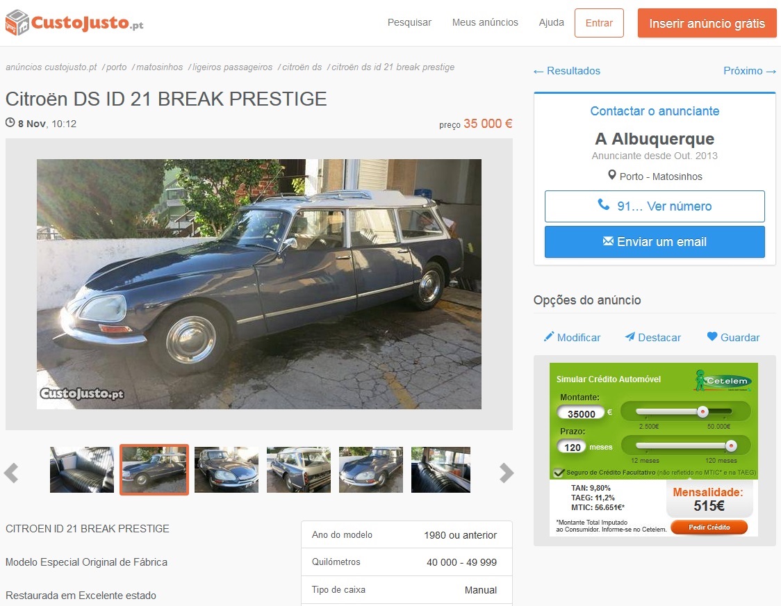 | Fin 2016, un lecteur de Citrowagon me signale une drôle de DS break à vendre. Je consulte l'annonce et je (re)découvre avec étonnement notre fameuse DS break nucléaire. L'annonce vient du Portugal ! Il faut absolument savoir comment elle a pu arriver là ! Par chance, la copine de mon deuxième fils est brésilienne, je lui demande de contacter ce vendeur pour en savoir plus. | |