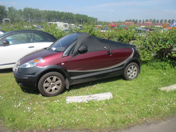 | Il fait trop chaud ! Je retourne vers le hall d'exposition. Décidément, le spectacle est aussi sur le parking client ! | Voici une des rare peutroën qui me plaisent. Cette charleston serait bien dans mon garage ! |