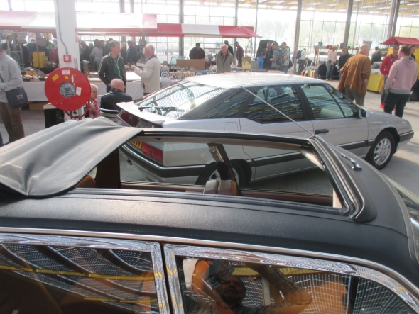 | Il fait bon à l'intérieur, ce bâtiment entièrement en verre est très bien conçu, ce n'est pas une serre ! Sur le toit en verre, il y a des milliers de panneaux photovoltaïques ! Il semble y avoir plus de monde que samedi. En fait, ce n'est pas la même clientèle. Hier il y avait surtout des collectionneurs à la recherche de leurs pièces manquantes, aujourd'hui, c'est plus familial, le spectacle du parking est différent. | |