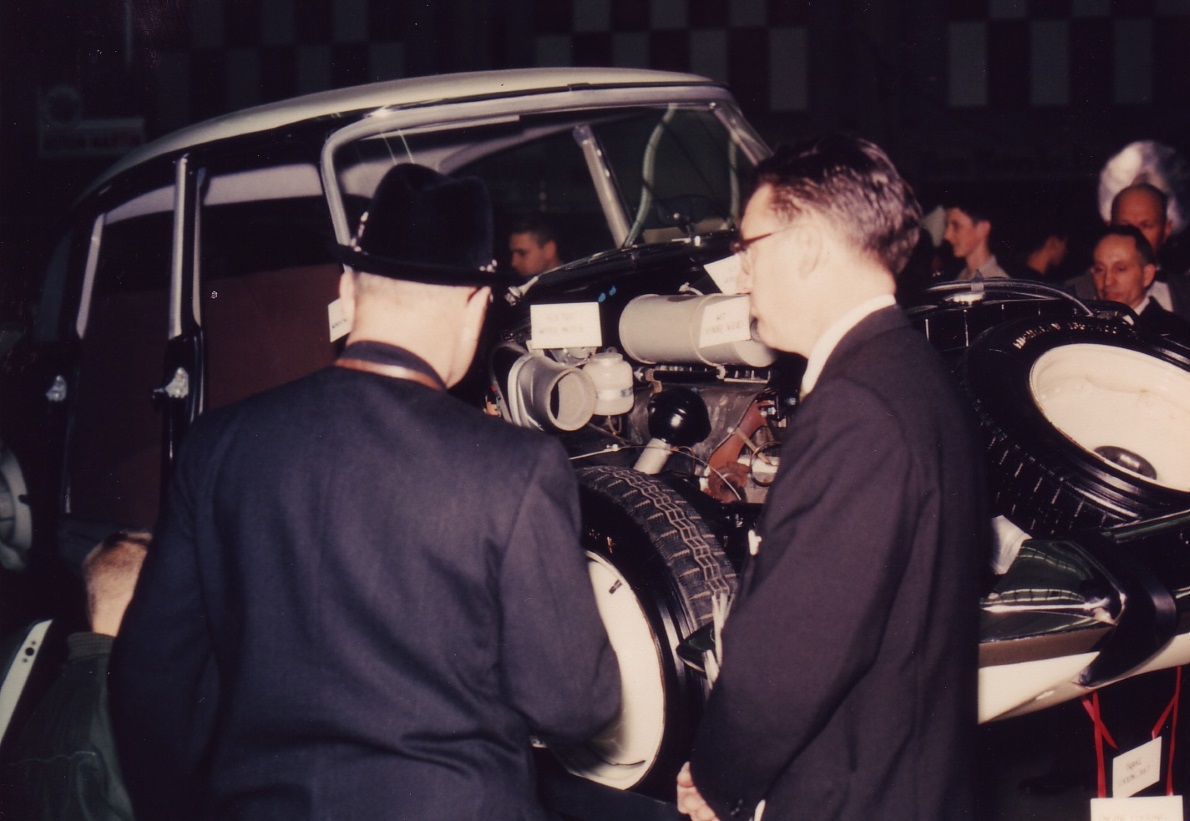 | .Le Salon de l’importation automobile de Seattle, en 1963, a dû paraître comme un triomphe pour "Automobiles Internationale", les photos existent toujours! Le jeune Chuck McConnell se tient à la droite de la photo de la DS. Chuck, montre la moitié technique de la DS, et explique les rouages internes "excentriques" de la DS19 aux passants étonnés. | |