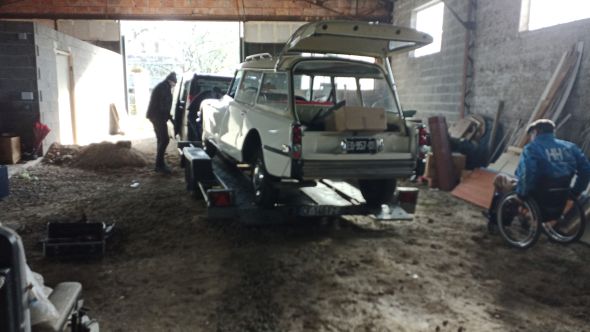 | Derniers préparatifs pour monter la DS sur le plateau, Jean-Gabriel n'en loupe pas une miette. A propos de miettes, merci à la maman de Jean-Gabriel pour le café bien chaud et les petits gâteaux. | |