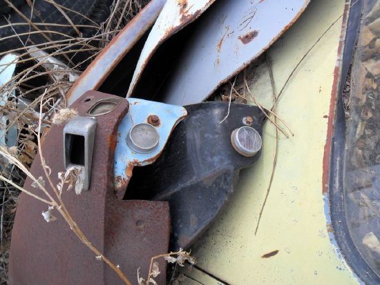| A propos de soleil, vous ne trouvez pas quelque chose de bizarre depuis le début de notre visite ? C'est étonnant le nombre de DS avec le toit démonté, pourquoi ? Et voila que sur la photo de droite on constate que le toit de cette ID n'a pas été démonté, il y a encore le cerclage métallique noyé dans le polyester qui sert à fixer le toit ! Mais alors que c'est il passé ? Je pense tout simplement que le soleil du désert du Colorado a littéralement mangé ces toits en polyester exposés ainsi depuis 50 ans. Cela ne présage rien de bon pour la conservation de nos DS dans les 100 prochaines années... | |