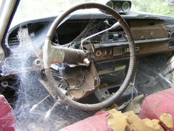 | ...voila la triste histoire de cette voiture, comme il en existe des milliers, sans l'obstination du garagiste à ne pas vouloir me la vendre, peut être serait elle roulante aujourd'hui. Hélas, à part quelques pièces intéressantes à récupérer, cette épave va rejoindre le ferrailleur......à moins que vous ne la vouliez! Contactez moi, je peux vous mettre en relation avec le nouveau garagiste, mais prévoyez un camion grue pour la prendre, car elle ne tient plus debout toute seule, et il faut tout prendre. | |