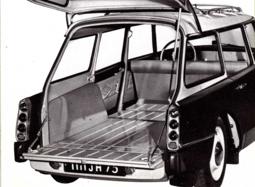 relevées. Un autre point commun à tous les catalogues, c'est la surface disponible à l'arrière (2.30M²) qui sera mise en évidence. A partir de 1972, les commerciales pourront avoir en option la surface arrière entièrement recouverte d'isorel stratifié. |