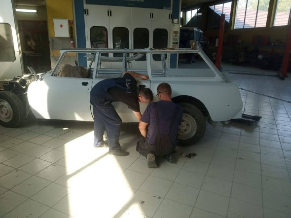 | Après avoir passé un certain temps chez le carrossier, le travail commence, démontage de la carrosserie. |