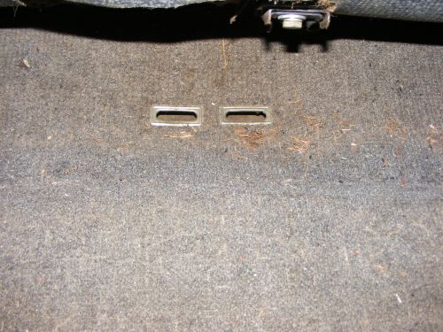 | Cette familiale étant en finition "confort", la moquette est en laine grise avec une épaisse couche de mousse en dessous. C'est la même que celles des berlines DS "confort". Depuis l'apparition des ceintures de sécurité, les moquettes arrières sont équipés de 2 "passe-ceinture" de forme rectangle. | |