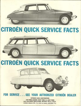 | Feuillet pubicitaire (USA 1964). Guide d'entretien DS et AMI 6 (USA 64) Catalague DS et ID (USA 64) Liste des vendeurs (USA 64) | |