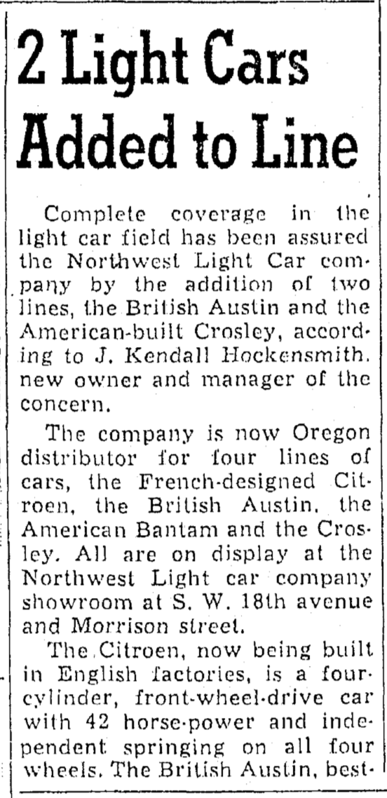 1940, un article de journal local indiquait que "Northwest Light Car"